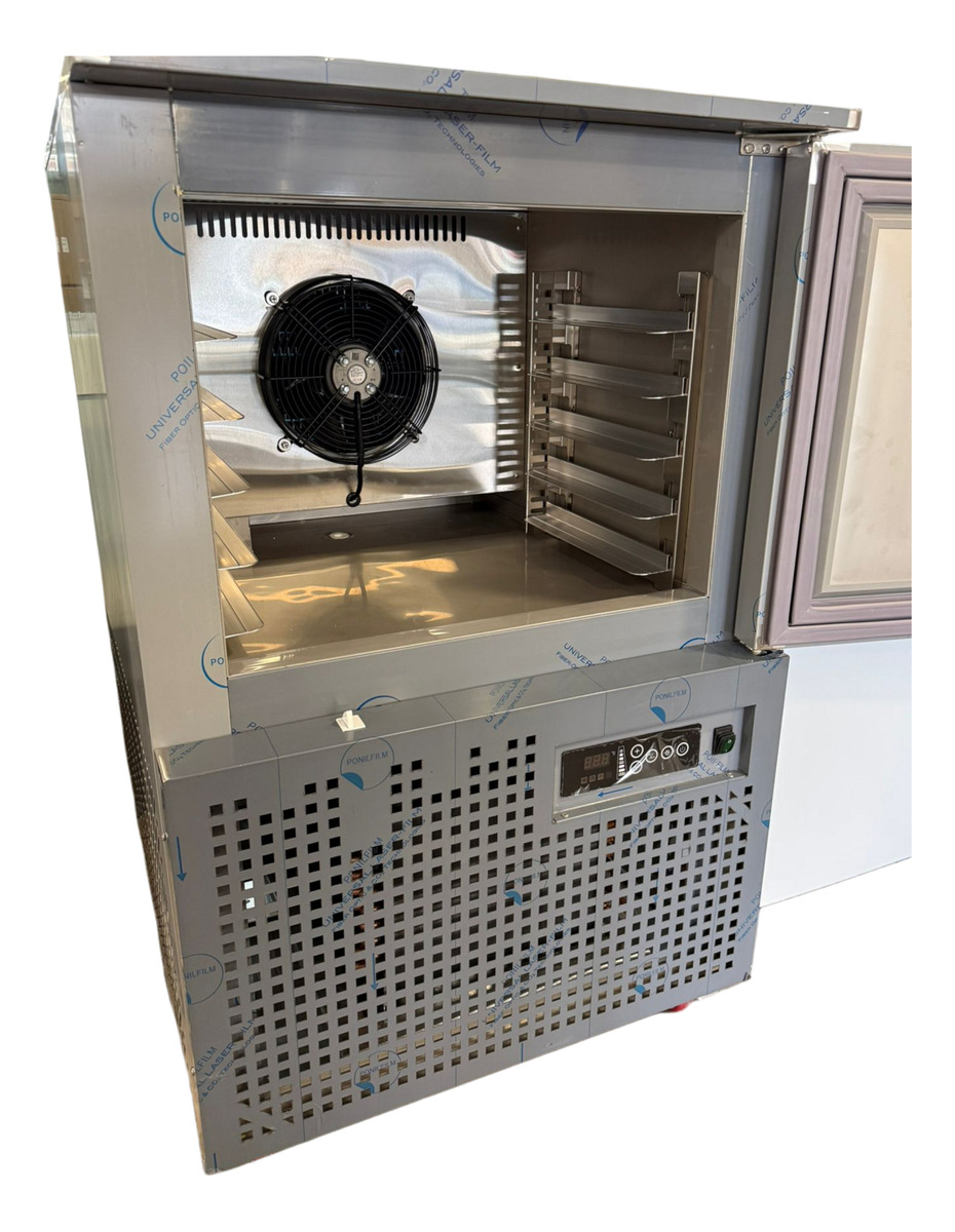 Permite disminuir rápidamente la temperatura de preparaciones recién cocinadas, evitando la proliferación bacteriana y preservando textura, sabor y valores nutricionales. También funciona como congelador rápido, logrando una cristalización fina que mantiene la calidad del producto.
