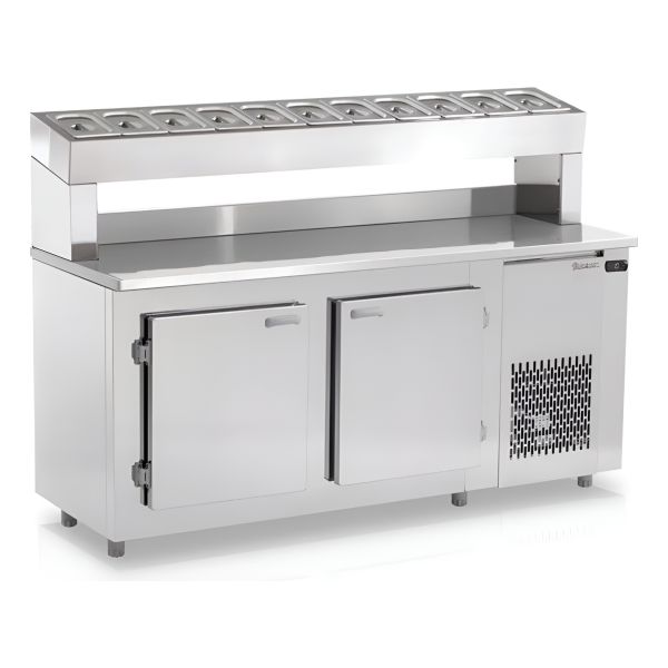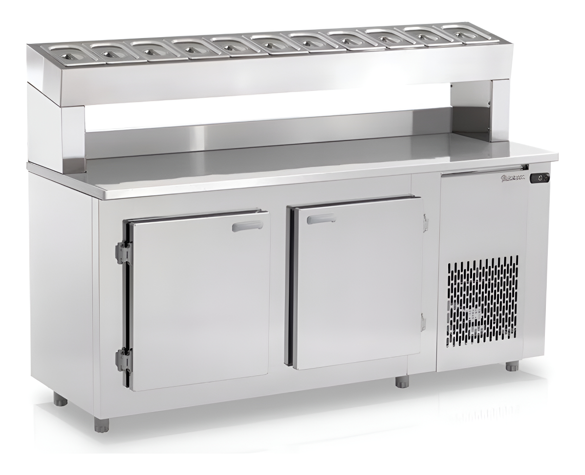 En resumen, el Bajo Mostrador 2 mts 2 Puertas con Topinera Gelopar GBPZ-190 es mucho más que un equipo de refrigeración. Es una solución completa para mantener tus ingredientes frescos, organizados y al alcance de la mano mientras creas. Añade eficiencia y estilo Gelopar a tu cocina hoy mismo y experimenta una forma completamente nueva de trabajar.