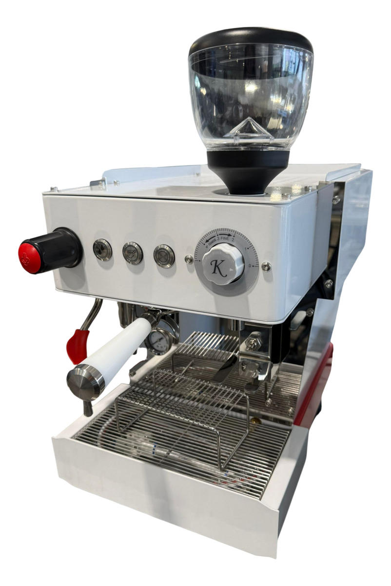 Pensada para ofrecer practicidad y rendimiento, combina en un solo equipo la molienda, la extracción de espresso y el vaporizado de leche, optimizando espacio y tiempos de preparación.
