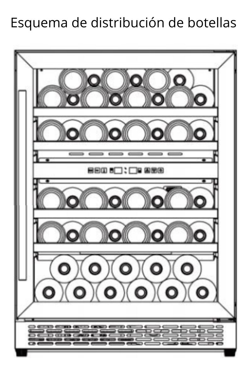 Capacidad: 49 botellas (botella de 750 ml estándar de 8 cm de diámetro)