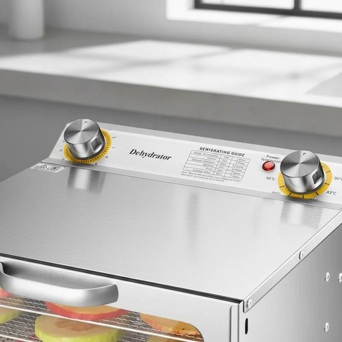 El temporizador es programable de 0 a 12 horas, lo que asegura un secado preciso sin necesidad de supervisión constante. Además, ofrece un rango de temperatura de 0 a 90 °C, adaptable a distintos procesos de deshidratación.