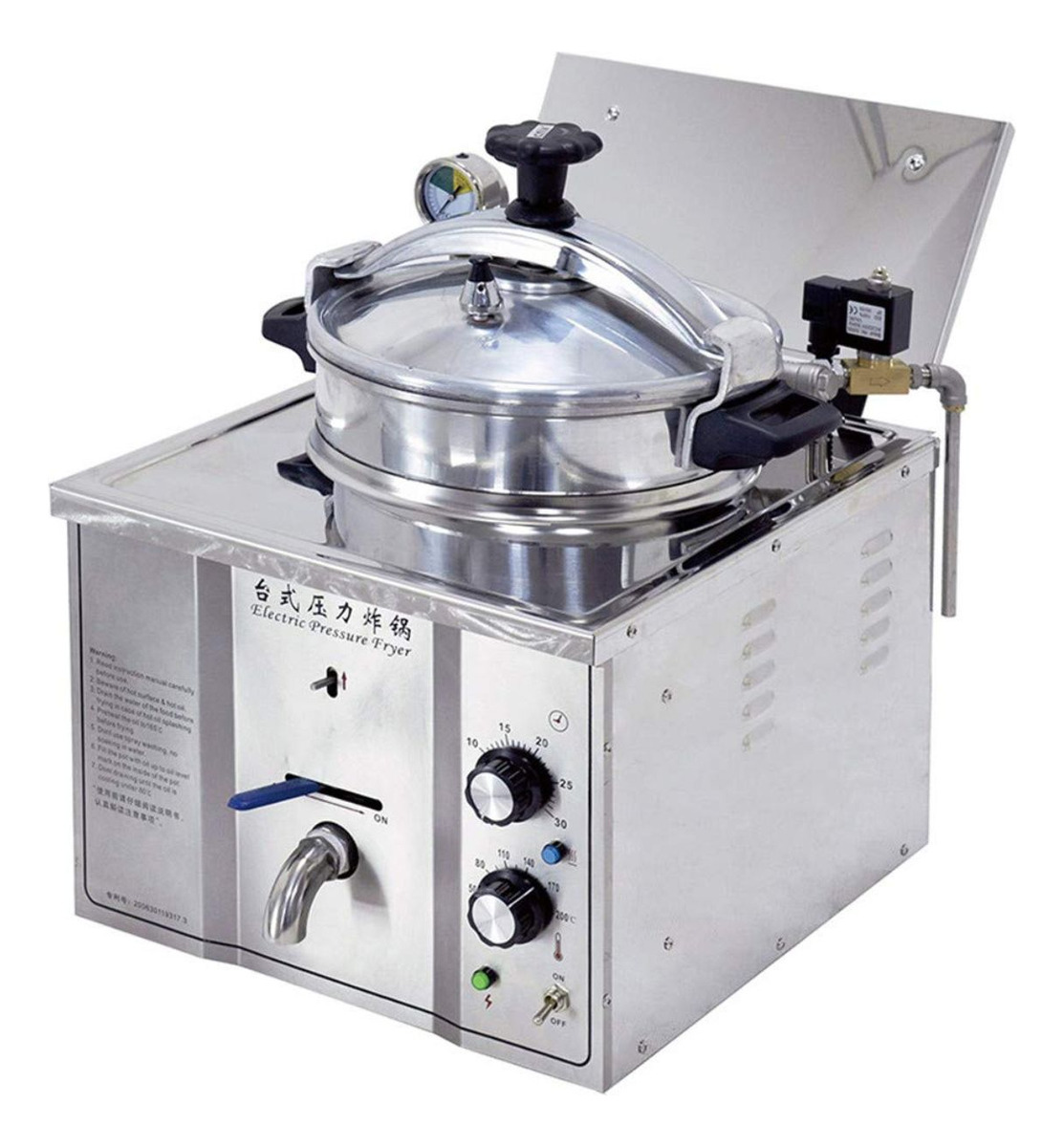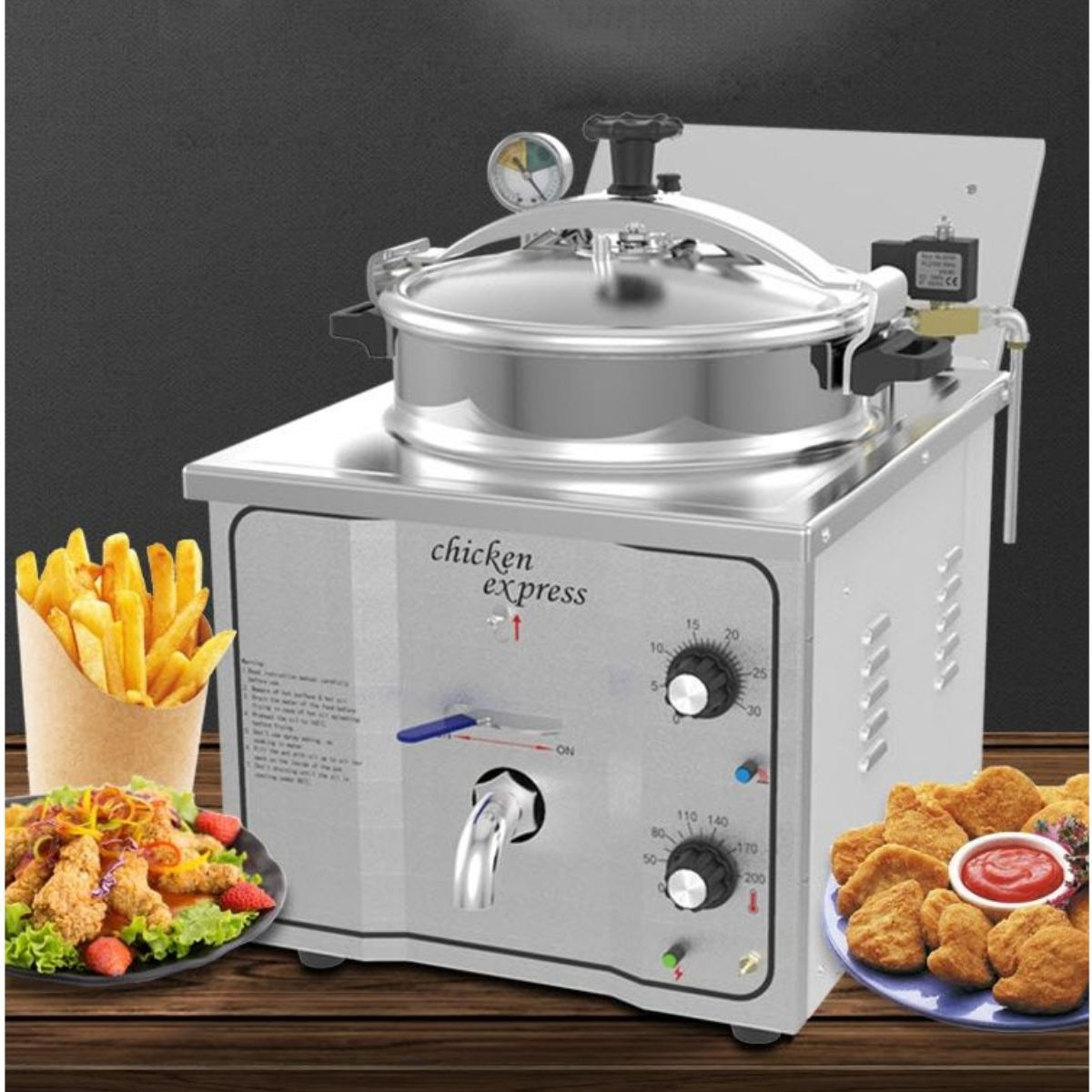 Fritador eléctrico a presión Unique modelo MDXZ-16A, diseñado para uso profesional en cocinas comerciales que necesitan rapidez, rendimiento y resultados consistentes en frituras. Con una capacidad de 16 litros, es ideal para pollerías, rotiserías, restaurantes y locales de alto volumen.