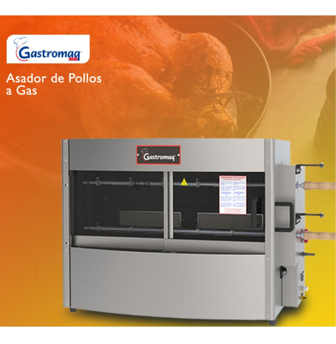 El asador a gas Gastromaq AF 10N está diseñado para rotiserías, restaurantes o locales gastronómicos que requieren una solución compacta, eficiente y confiable para preparar pollos rostizados con calidad profesional. Su capacidad de hasta 10 pollos distribuidos en 2 espadas lo hace ideal para volúmenes moderados de producción.