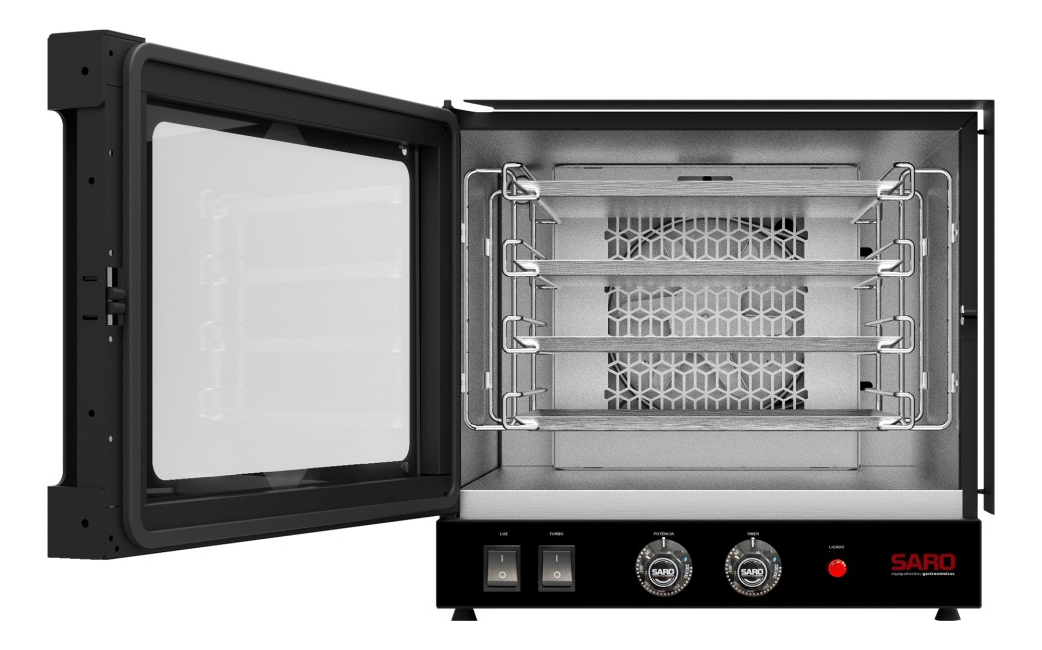 La lámpara de cocina con turbohorno eléctrico de 4 vías y 220 V de la marca Saro es perfecta para quienes buscan practicidad y eficiencia en la cocina. Con su tipo de cocción eléctrica, podrá preparar deliciosas pizzas, panes de queso y comida en general de forma rápida y uniforme. Con una temperatura máxima de 250 °C y una mínima de 50 °C, tendrás un control total sobre la cocción de tus platos.
