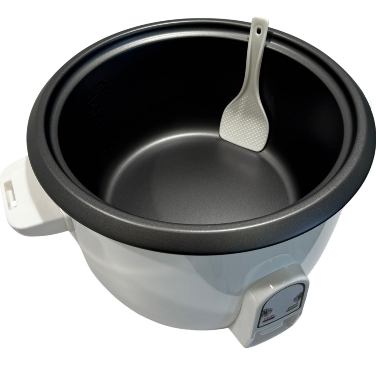 El recipiente interno cuenta con superficie antiadherente, lo que evita que el arroz se pegue y facilita la limpieza después de cada uso. Funciona a 220V – 50Hz e incluye cuchara para servir, aportando practicidad desde el primer uso.
