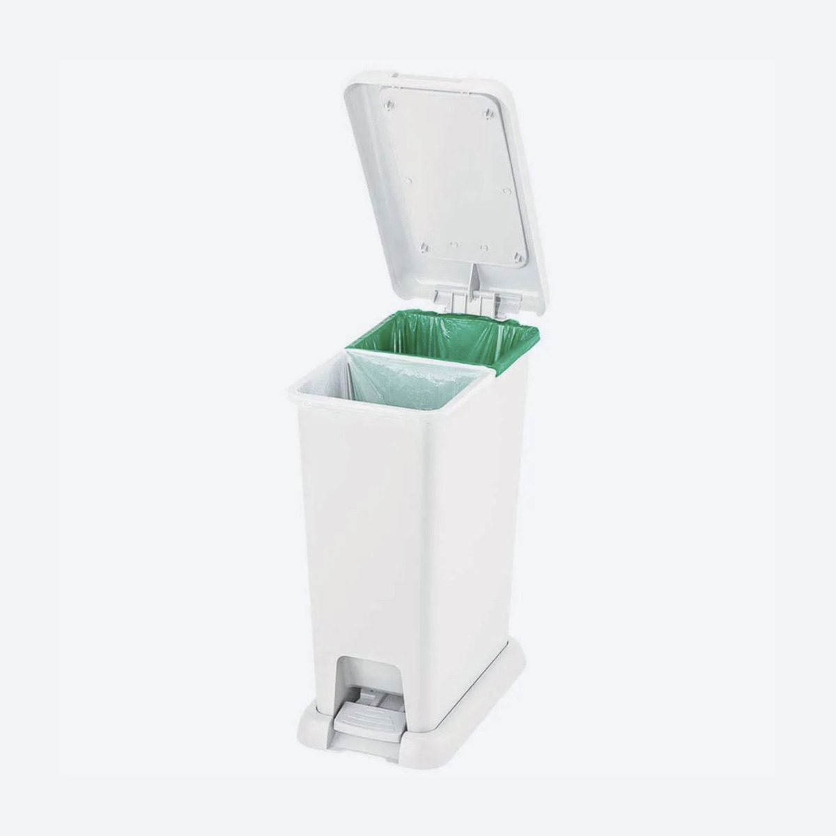 Sistema de apertura: Tapa abatible accionada por pedal, que permite una apertura y cierre suaves, evitando el contacto directo con los residuos.