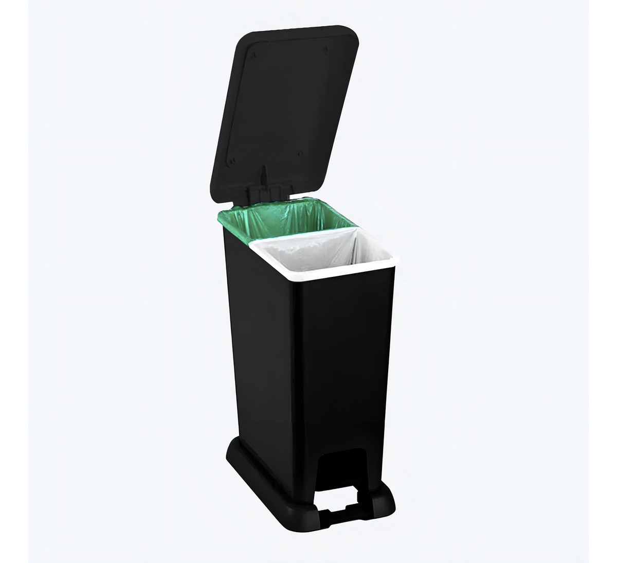 Sistema de apertura: Tapa abatible accionada por pedal, que permite una apertura y cierre suaves, evitando el contacto directo con los residuos.