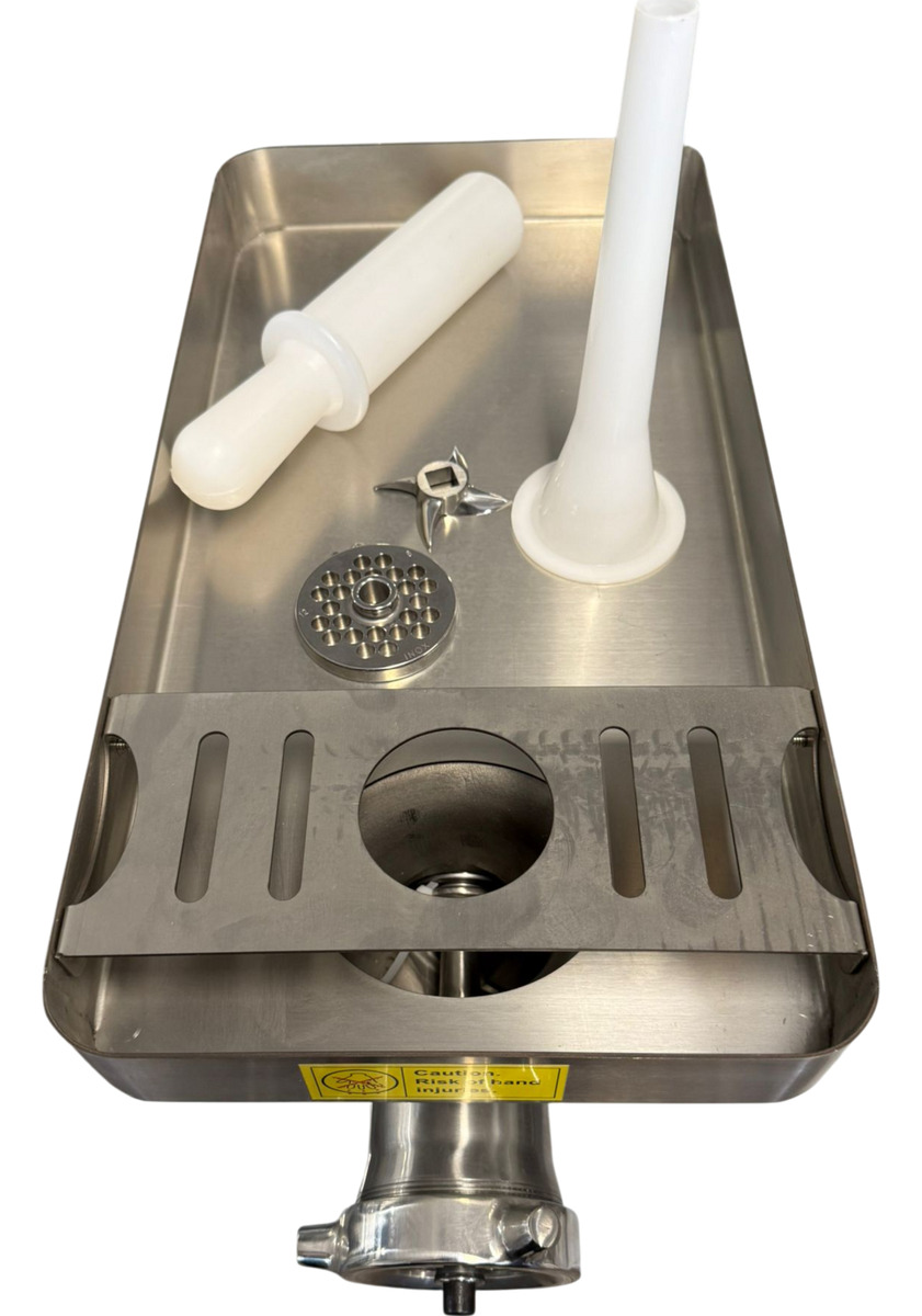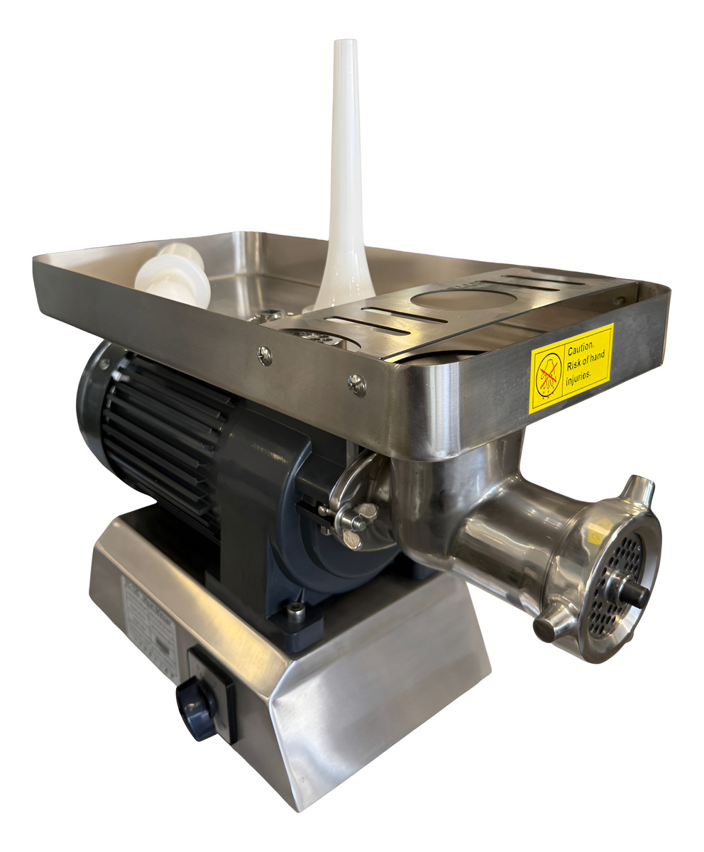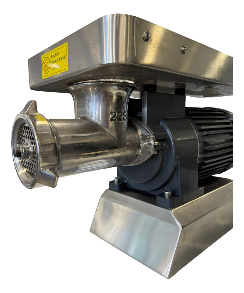 Su motor de 1500 W y velocidad de 1800 r/min permiten una producción promedio de 350 kg/h, ofreciendo un picado rápido, uniforme y de gran calidad. El buje N.º 22 amplía la capacidad de procesamiento, facilitando el trabajo con grandes volúmenes de carne.