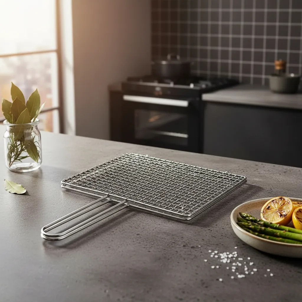 Es ideal para verduras, carnes y alimentos delicados que requieren un manejo más preciso en la parrilla.