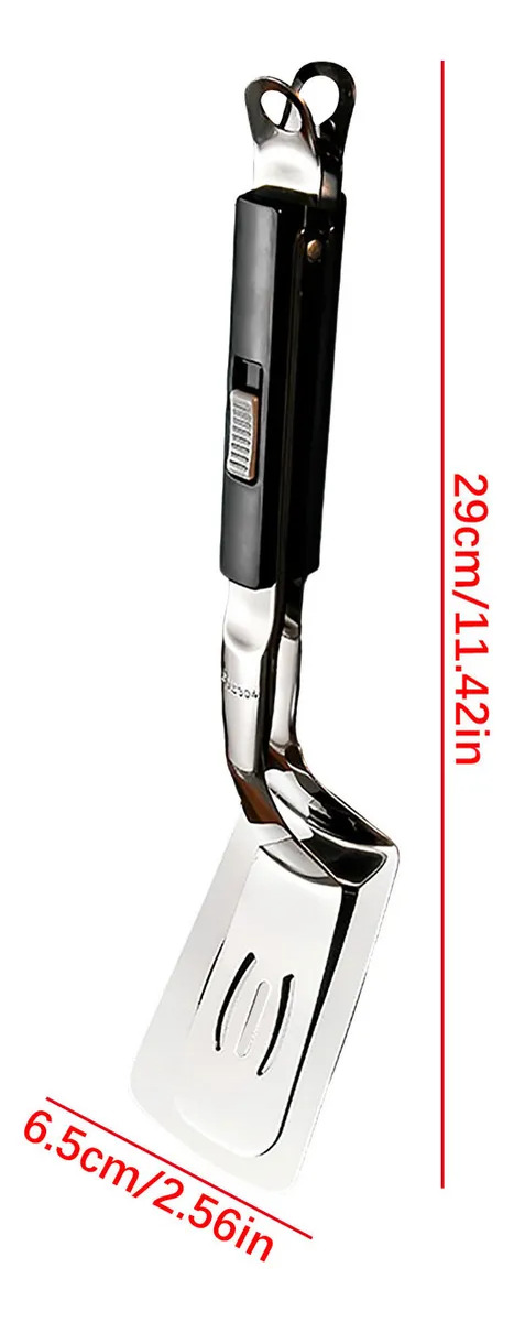 Sumá practicidad y precisión a tu cocina con esta pinza tipo espátula de acero inoxidable, diseñada para manipular alimentos con mayor control y seguridad. Su formato combina la funcionalidad de una pinza con la superficie de una espátula, ideal para girar, levantar y servir con facilidad.