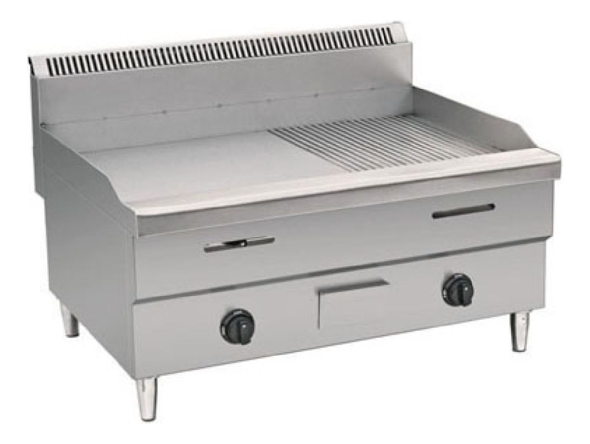 Cuenta con una superficie de cocción mixta, con mitad plancha lisa y mitad plancha grillada, ideal para preparar carnes, vegetales, hamburguesas, sandwiches y una amplia variedad de alimentos, logrando diferentes tipos de cocción en simultáneo.
