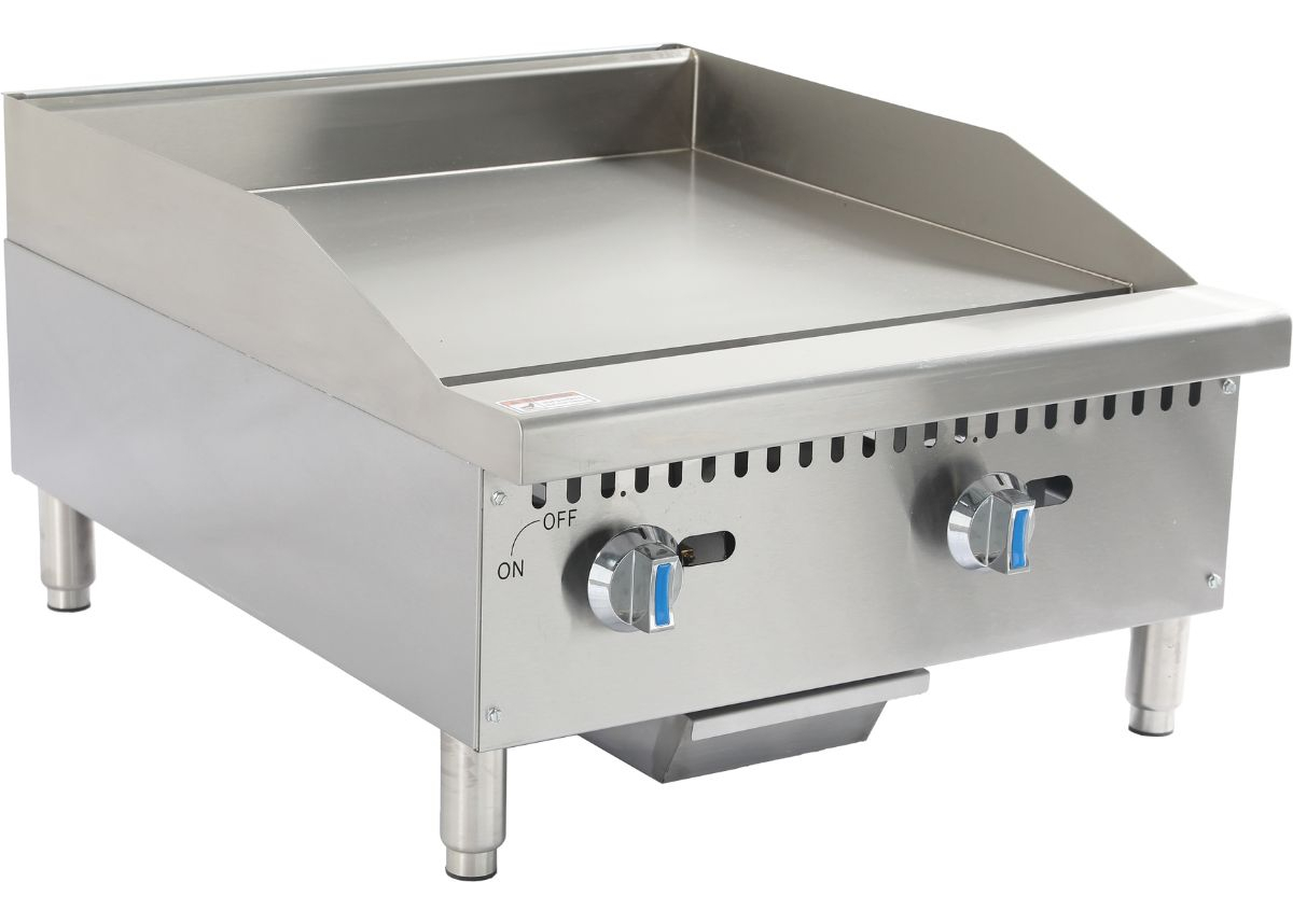 Incorpora una placa de cocción de 3/4″ de espesor, lo que garantiza una excelente retención y distribución del calor. Sus quemadores en forma de U aseguran una cobertura térmica uniforme en toda la superficie, permitiendo cocciones parejas incluso durante uso intensivo.