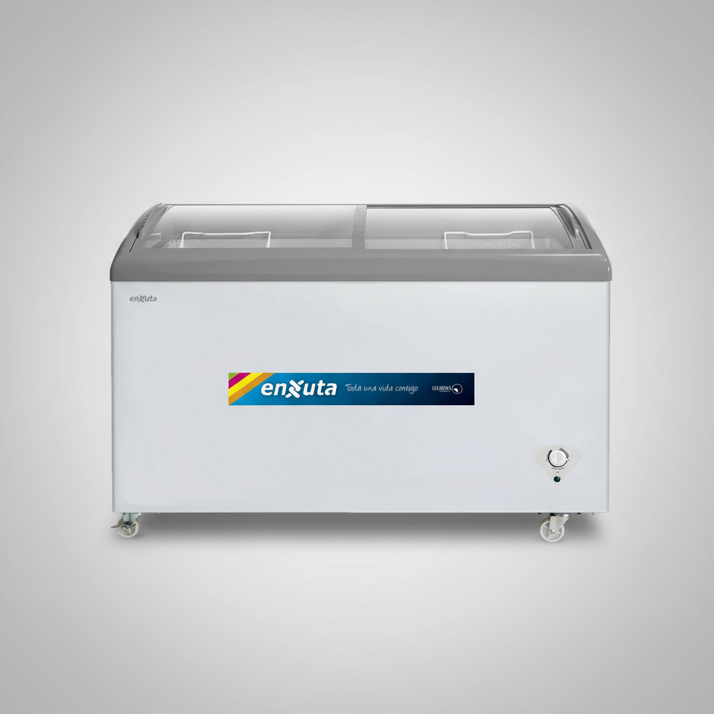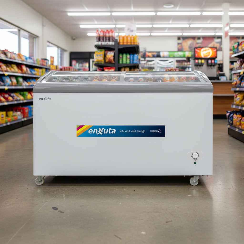Presentamos la Vitrina Comercial Enxuta Horizontal de 254 litros, ideal para todo tipo de negocios que buscan optimizar la exhibición y conservación de sus productos. Su diseño cuenta con puertas de vidrio corredizas que permiten una fácil accesibilidad mientras mantienen la temperatura óptima. El interior de aluminio no solo asegura durabilidad, sino que también facilita su limpieza. Incluye dos cajones removibles que ayudan a organizar productos de manera eficiente. El termostato ajustable y el gas refrigerante R290 garantizan un rendimiento energético superior. Con unas dimensiones de 89 cm de altura, 63 cm de profundidad y 125,5 cm de ancho, esta vitrina se adapta perfectamente a diferentes espacios comerciales. Ideal para exhibir bebidas y alimentos, su tecnología de vidrio reflectivo al calor mejora la conservación. **Imágenes meramente ilustrativas**