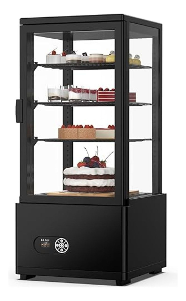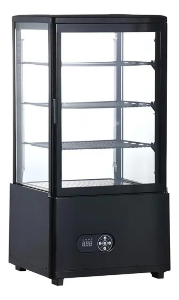 Vitrina refrigerada Unique FT-68L, diseñada exclusivamente para colocar sobre mostrador. Su formato de 4 caras de vidrio permiten exhibir postres, tortas, tartas, sandwiches fríos y productos delicados con máxima visibilidad desde todos los ángulos. Ideal para confiterías, cafeterías, panaderías, rotiserías y mostradores de venta de alimentos.